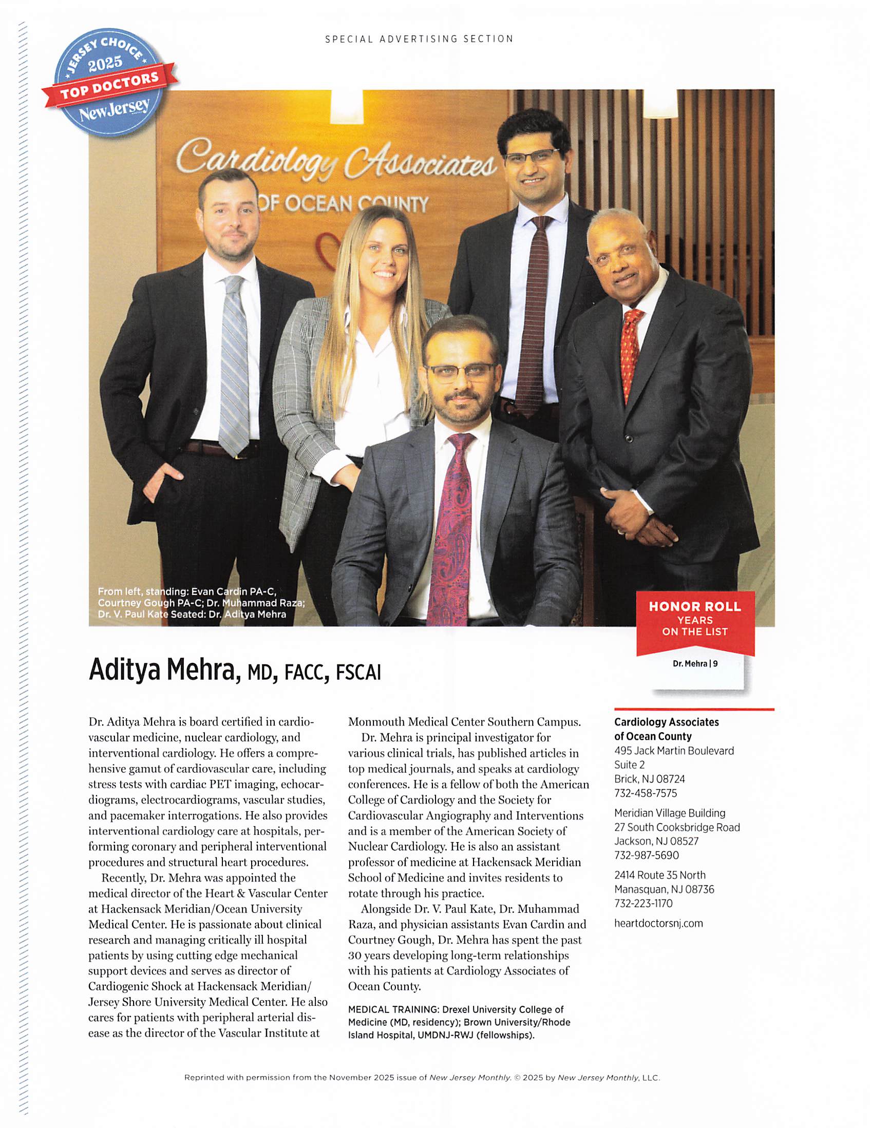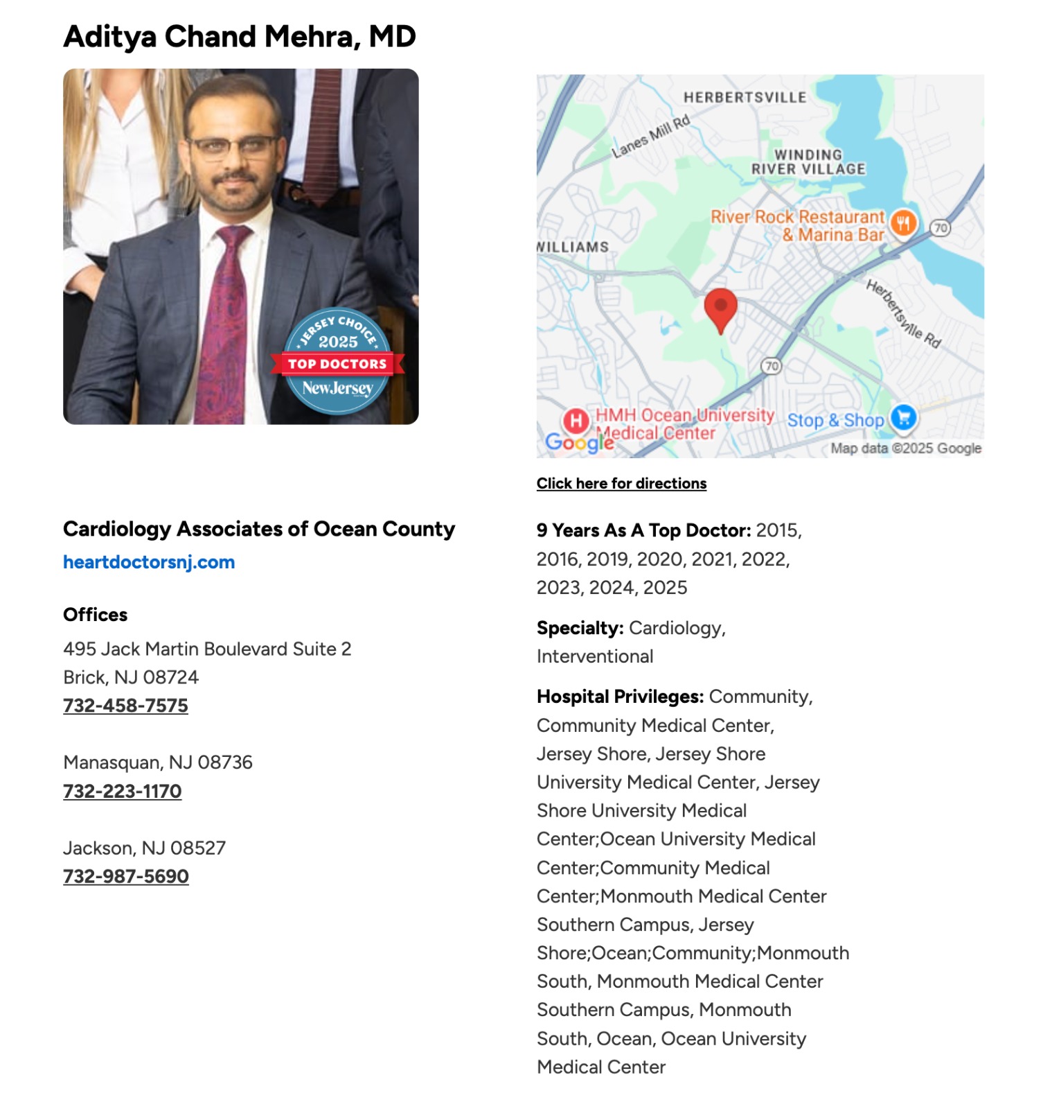 For more than three decades, Cardiology Associates of Ocean County has been providing state-of-art cardiac care. Our highly trained cardiologists provide comprehensive cardiovascular care to our patients. Our offices are conveniently located in Brick, Manasquan, and Jackson in New Jersey, all with a service and professional staff ready to assist you.
